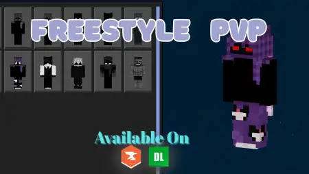 PVP Collections: Freestyle Skin Pack is a Bedrock PvP skin set with dark tones, bold accents, and clean visuals, built to stay readable and sharp during fast, messy fights.