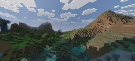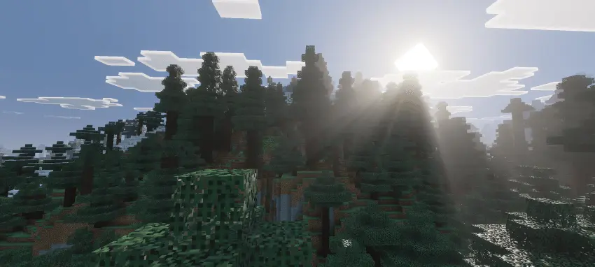 Outdoors, the tonemap and biome color fix do heavy lifting. Forests shed the neon tint, plains read natural, cherry and flower biomes pop without oversaturating, and deserts/mountains carry contrast that flatters stone, sand, and snow. Hit a coastline and the new water plus caustics sell depth at a glance; shallow bays stay clear, deeper channels darken properly, and reflections give boats, docks, and cliffs that “photo ready” edge.